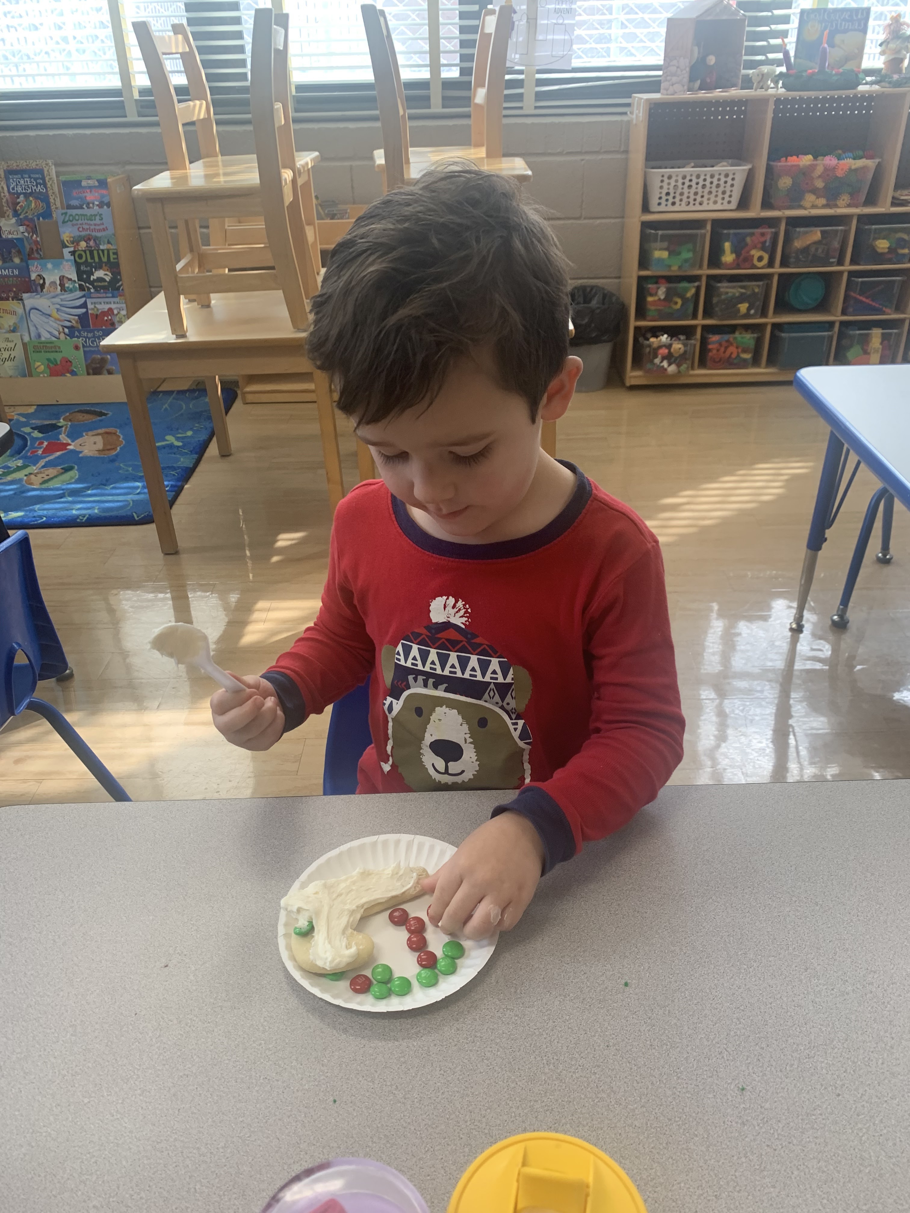 What a fun week! Our theme this week was Merry Christmas. We learned the letter Cc, the color green, the shape of a star, and the number 5. We started out the week boarding the Polar Express. We celebrated pajama day, worked on our special projects, and watched the Polar Express accompanied with hot chocolate and cookies. On Tuesday, we celebrated a Hawaiian Christmas day! We spent the day feeling tropical despite the rain, watching Frosty, and building gingerbread houses! On Wednesday, we celebrated Grinch day with Ms. Brittney's class by watching the Grinch together and celebrated as a whole school at our monthly praise assembly! On Thursday, we wrapped our secret projects, we got to watch Rudolph the Red Nosed Reindeer, listened to some 6th graders read us some Christmas books and celebrated Las Posadas as a whole school. We got to celebrate Leanna's birthday since we won't be together for her actual birthday. On Friday, we embraced the chaos and spent the whole day celebrating Christmas cheer! We played Christmas games and watched "The Star" with Ms. Jay's friends. The students even got to decorate their very own sugar cookies! I just wanted to say thank you to everyone who sent in drinks and treats for our week long Christmas parties!